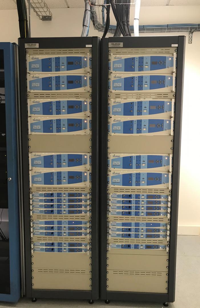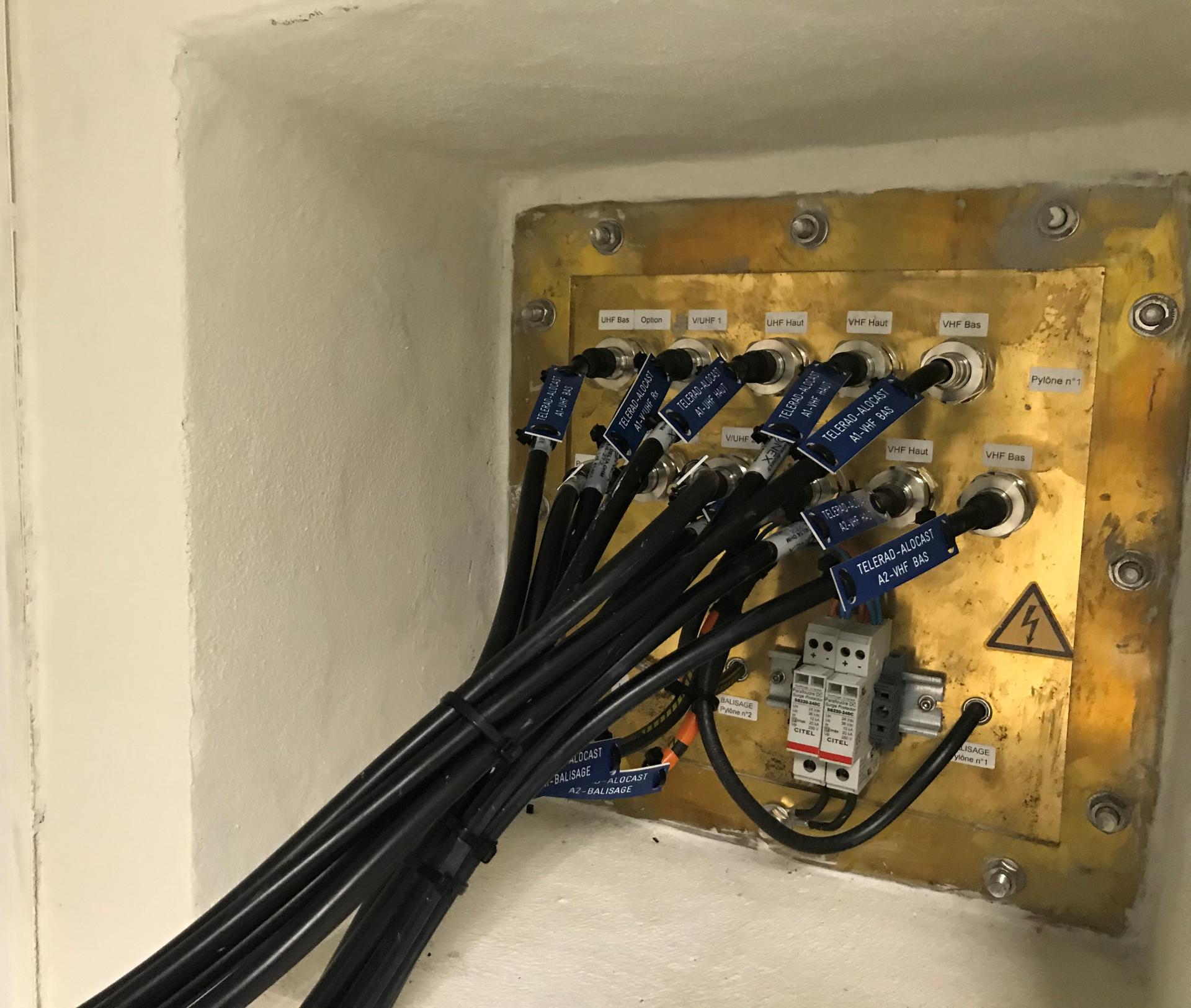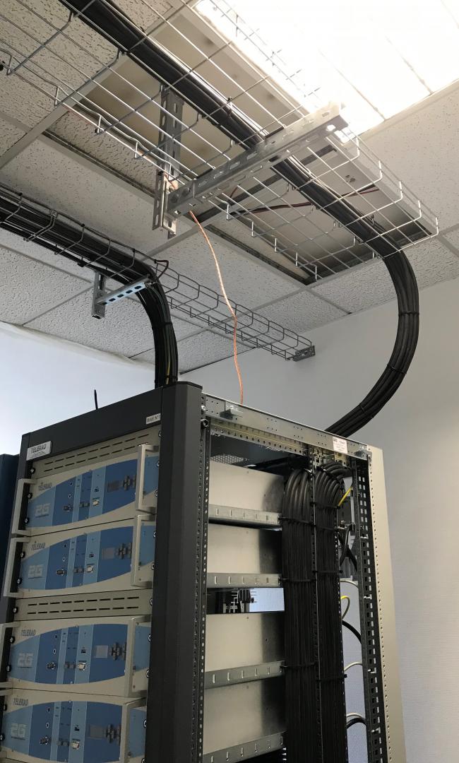 Mise en place d'une baie TELERAD avec arrivée des câbles coaxiaux et des câbles énergie