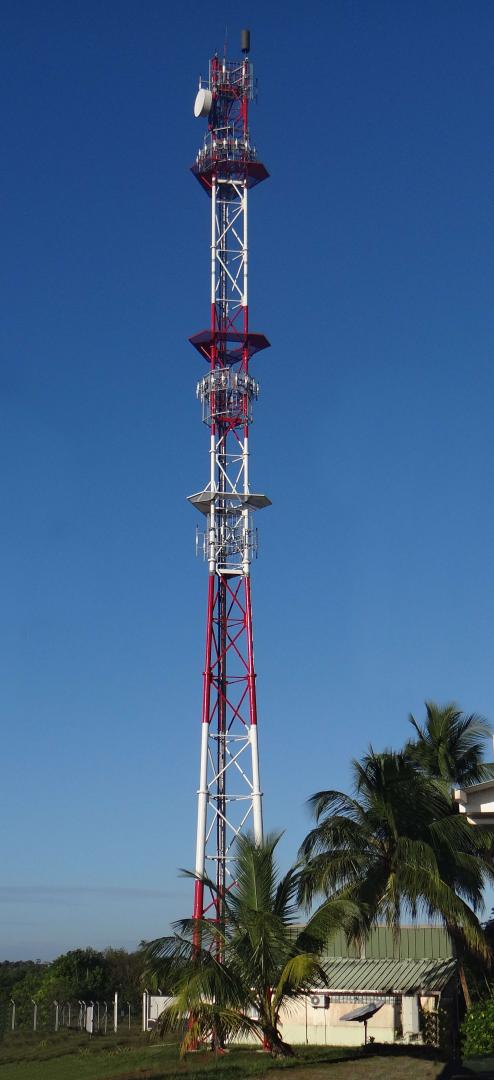Dans le cadre de la rénovation du pylône, ALOCAST a installé les nouveaux aériens UHF VHF sur le site de Kourou en Guyane.